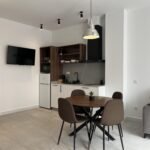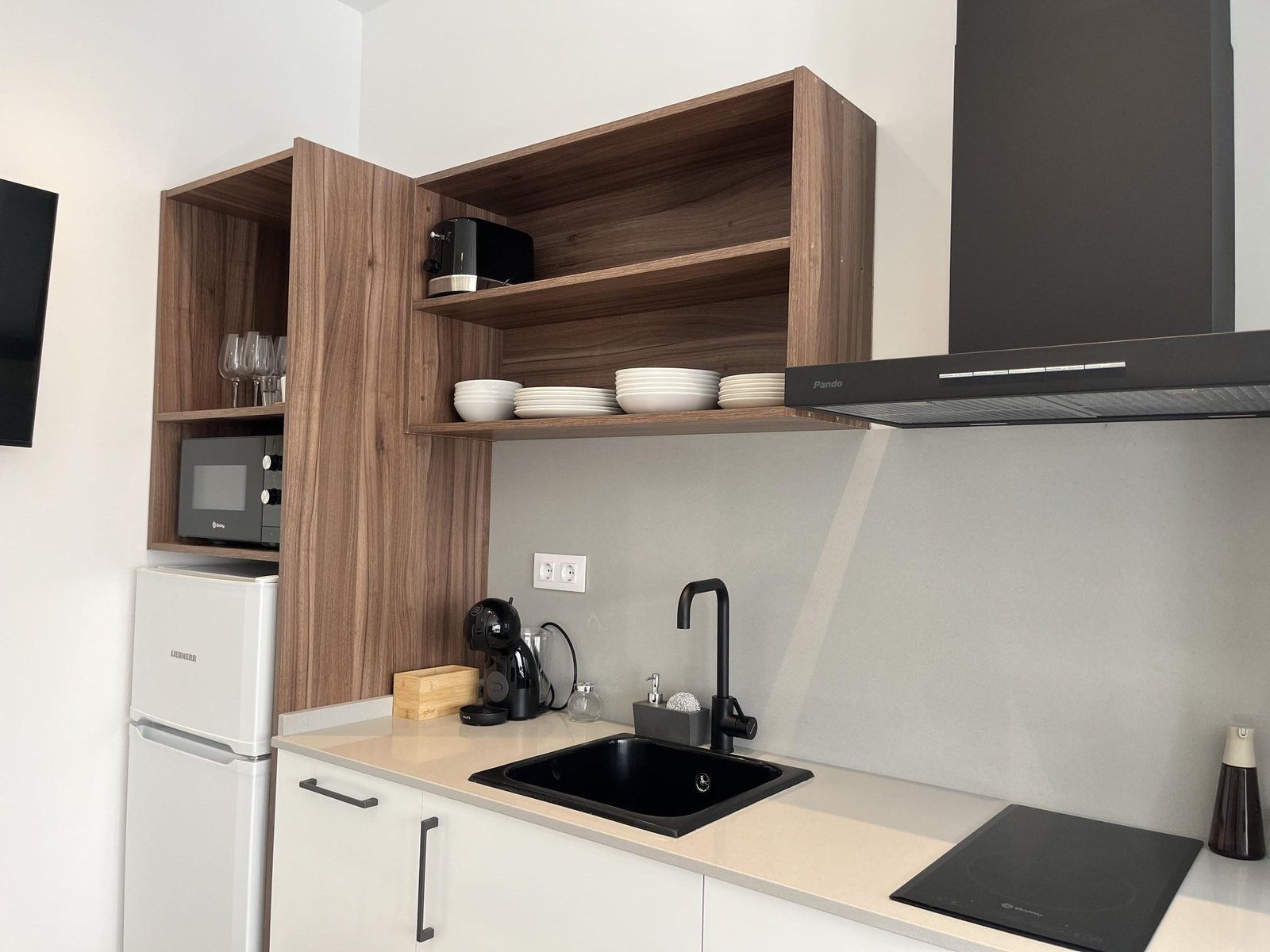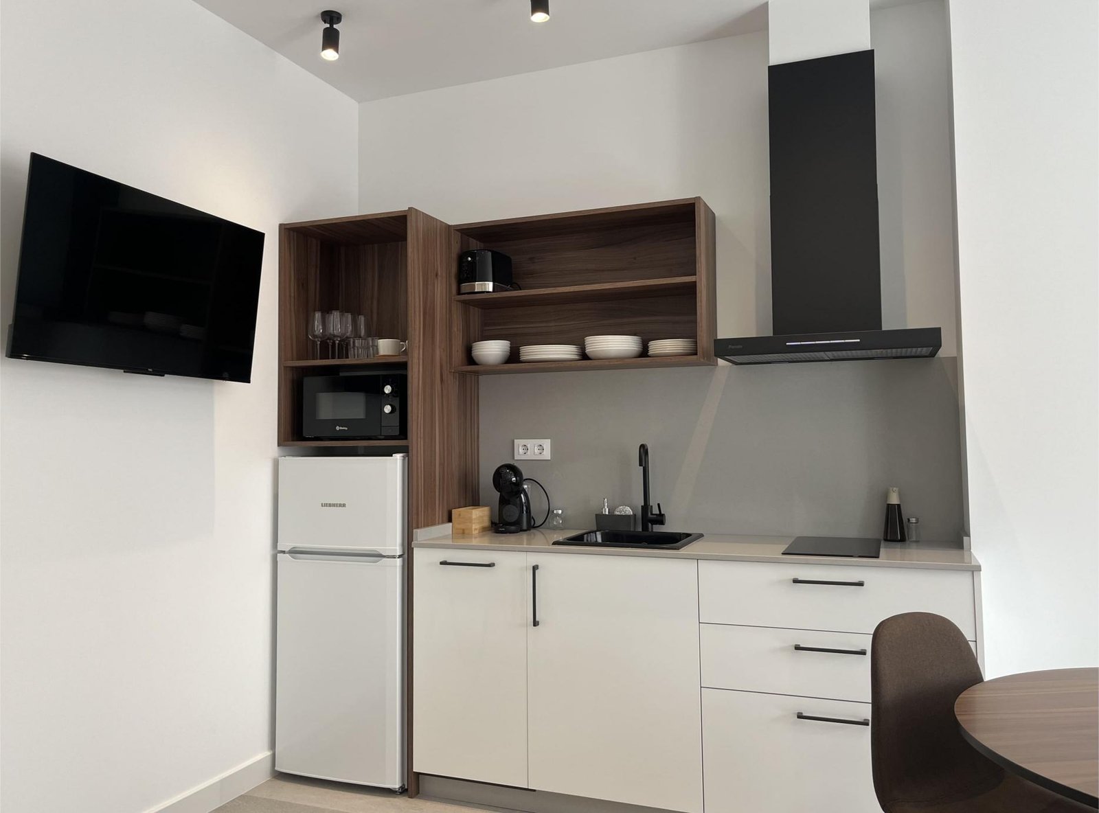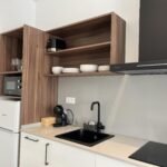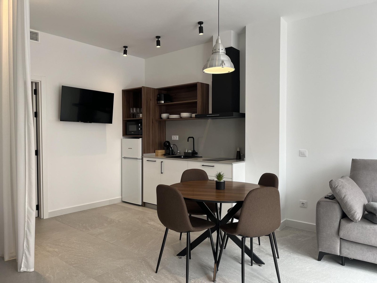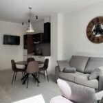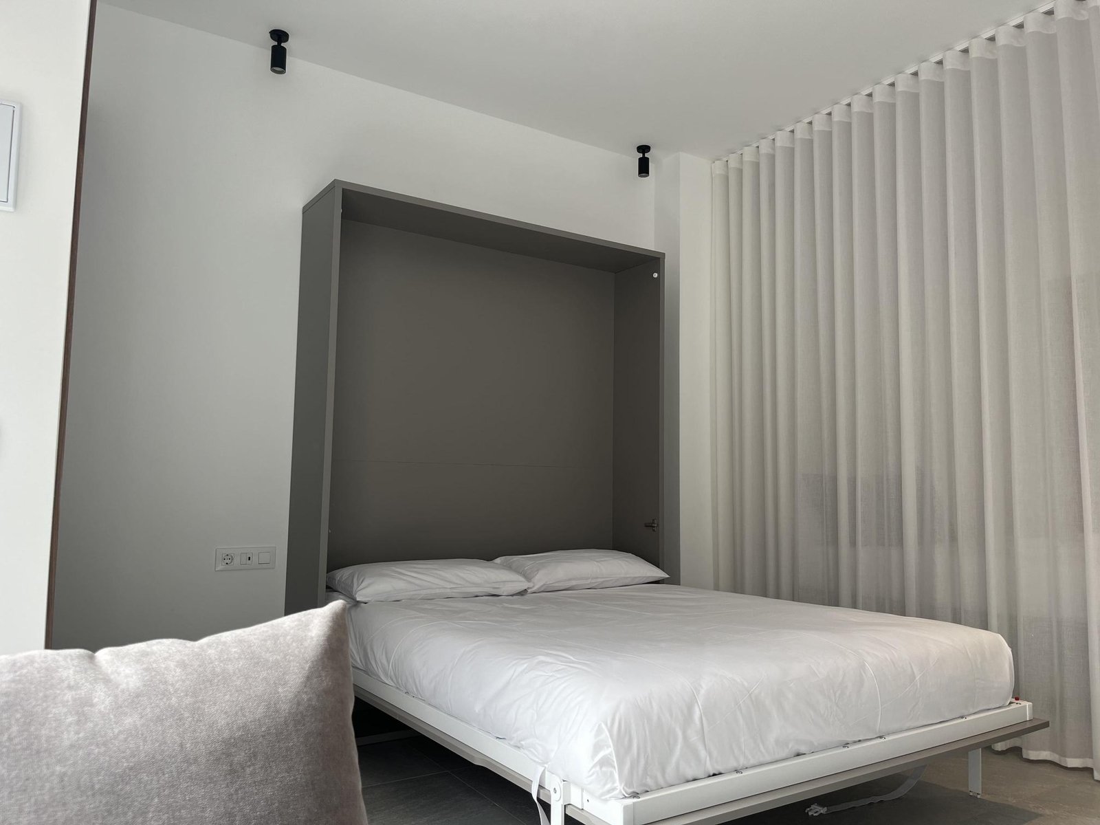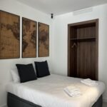 El apartamento es un alojamiento tipo loft, el cual cuenta con una capacidad para hasta 5 personas, con 2 camas dobles de 150 cm y un sofá cama de 135 cm. También dispone de baño con ducha y de una pequeña cocina en la que hay diversos utensilios como: microondas, nevera, placa de inducción, sartenes, platos, vasos, tenedores, cuchillos, etc.